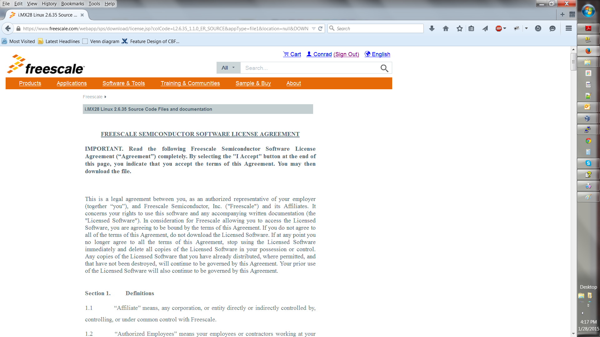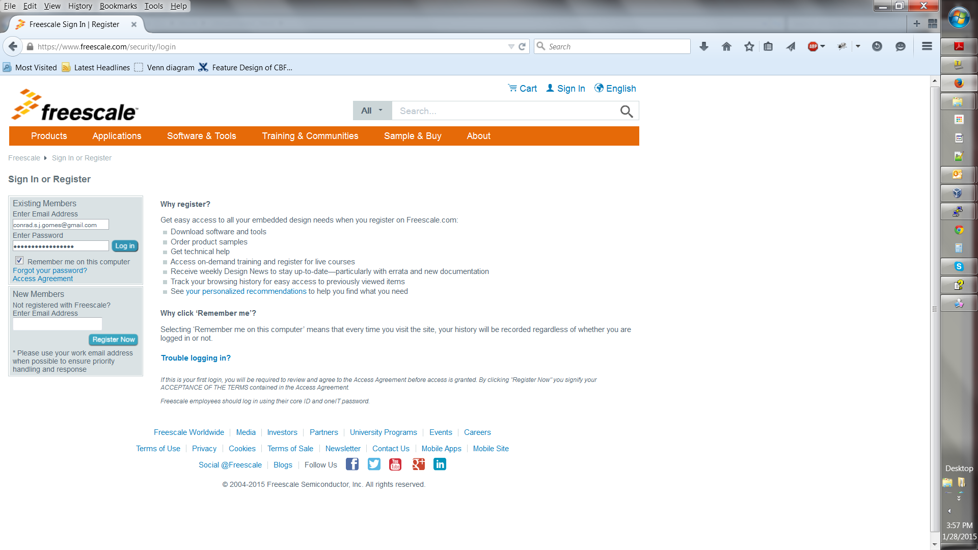 Before we proceed with the download of the source code and tools we need to register with the Freescale website. After registering with the website log on to the website with the credentials used at the time of registeration: